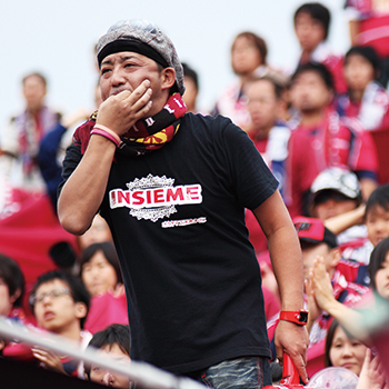 「KANKO」スタジアムにファジアーノ岡山を応援する五千人の大声援が響き渡る。その中でもスタジアムの十番ゲート付近、通称「GATE10」に集まるコアなサポーター陣の先頭に立っているのが「CURVAROSA」コールリーダーの岡本透氏だ。岡本氏はファジアーノ岡山がJリーグに昇格するずっと前、中国リーグ時代からの応援団長だ。当時、まだ岡山でも全く知られていなかったファジアーノ岡山の試合を見に行く機会があり、そのあまりに寂しいスタジアムに愕然とした。しかしその時、岡本氏のハートに火がついた。「もっと多くの応援があれば、このチームは強くなれる。俺が応援の先頭に立ってスタンドを盛り上げてみせる!」そう決意した岡本氏は海外も含め様々なクラブの応援を研究しながら、仲間を増やしていった。岡本氏たちの応援の甲斐あってかファジアーノ岡山は快進撃を続け、ついに昨年Jリーグにまで昇格したのだ。「世界中どこへ行っても素晴らしいクラブがある街は活気に満ち溢れている。ファジアーノが活躍すれば、岡山を今までにないほど熱くすることが出来ると信じている。」と岡本氏は言う。まだスタジアムに行ったことのない人はぜひ足を運んでその熱気を肌で感じてほしい。サッカーのもつ無限の可能性を感じられるはずだ。