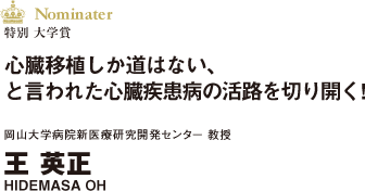 約一万に一人。心臓に何らかの問題をもって生まれてくる子どもの数である。心臓移植しか助かる術はない重篤の心臓疾患に、この春新たな光が射した。2001年、王教授は心臓の中に自分の組織を治せる能力を持つ幹細胞があることを発見。十年でその大量培養法を開発し、心不全死を回避する大きな治療効果を上げた。また、動物の心臓から人の心臓をつくる研究など、柔軟な発想とひたむきな努力で、患者を救うという目標に向かう王英正氏。彼の手によって心臓疾患病の未来は大きく変わるかもしれない。